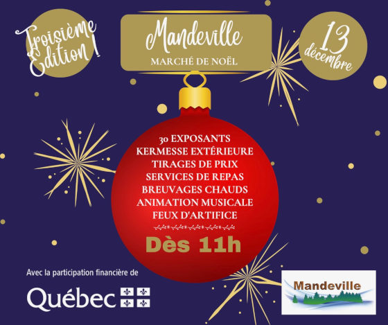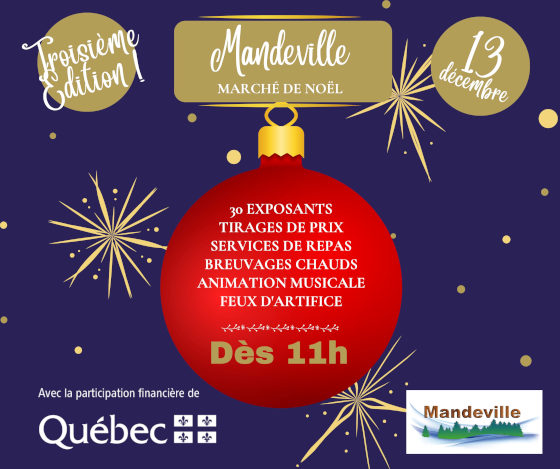 La magie des fêtes s'installe à Mandeville le samedi 13 décembre! Notre marché vous réserve de belles découvertes avec plus de 30 exposants talentueux. Repérez les étoiles qui identifient nos artisans locaux - fierté de Mandeville.